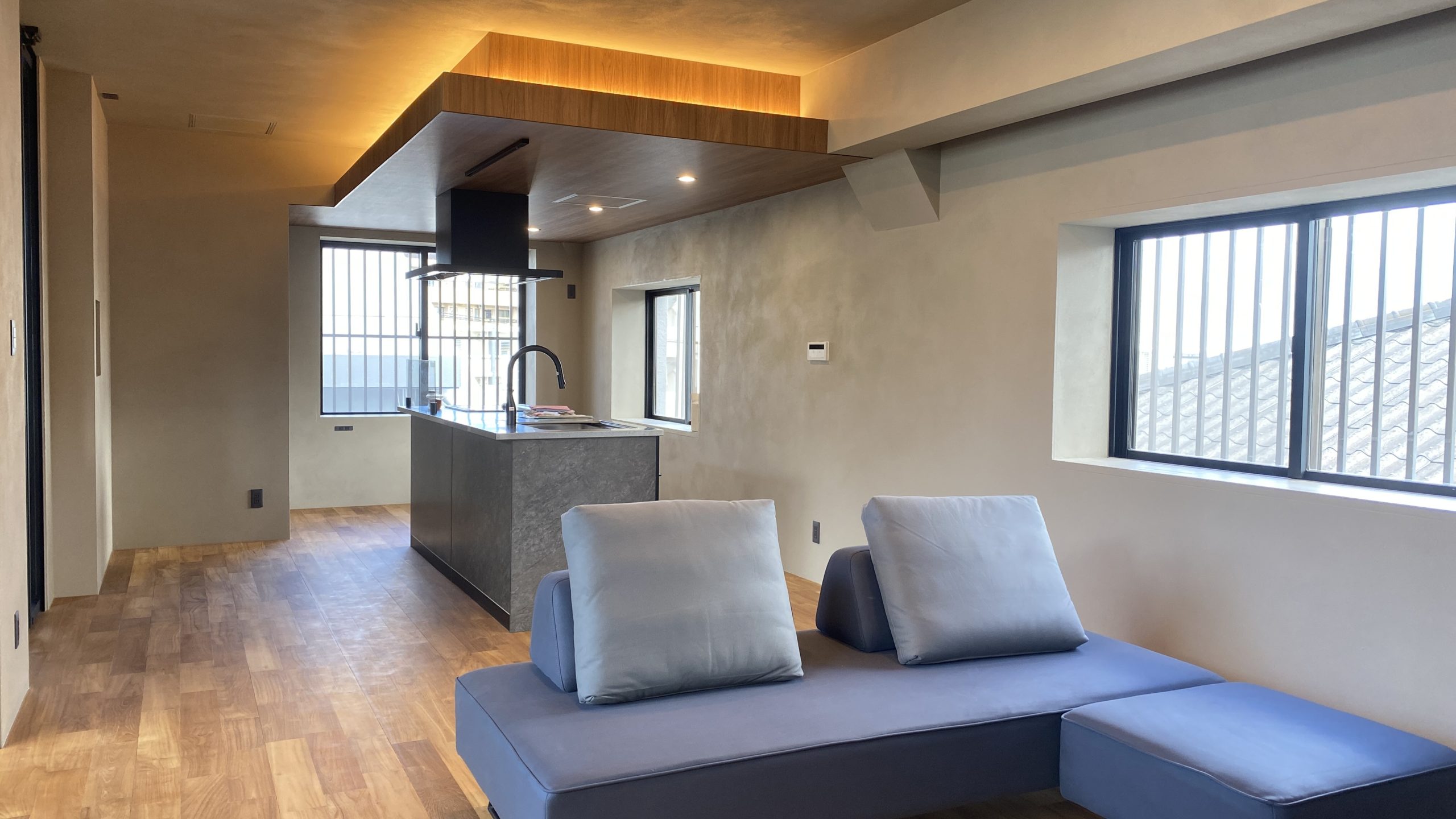 2階は、これまで廊下に沿って個室が並ぶ間取りでしたが、今回のリフォームでは壁を取り払い、広々とした1LDKの空間へと大きく間取り変更を行いました。
